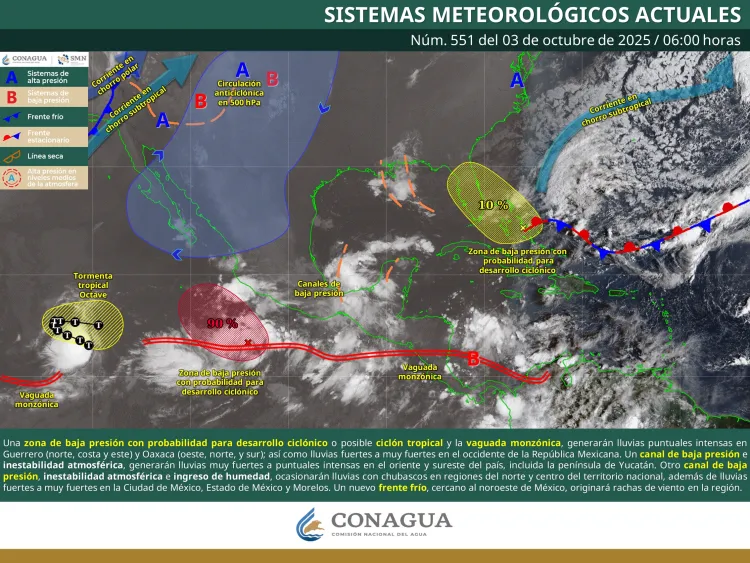 Para más información del ciclón tropical Octave en el océano Pacífico, consulta el aviso del Servicio Meteorológico Nacional en: https://smn.conagua.gob.mx/es/pronosticos/avisos/aviso-de-ciclon-tropical-en-el-oceano-pacifico