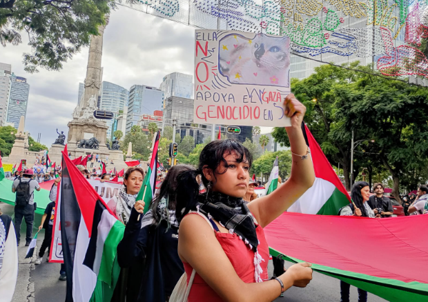 Los manifestantes exigieron que el gobierno de la presidenta Claudia Sheinbaum rompa relaciones con Israel y solicitó la repatriación segura de seis mexicanos liberados por Israel tras ser detenidos mientras llevaban ayuda humanitaria a Gaza.