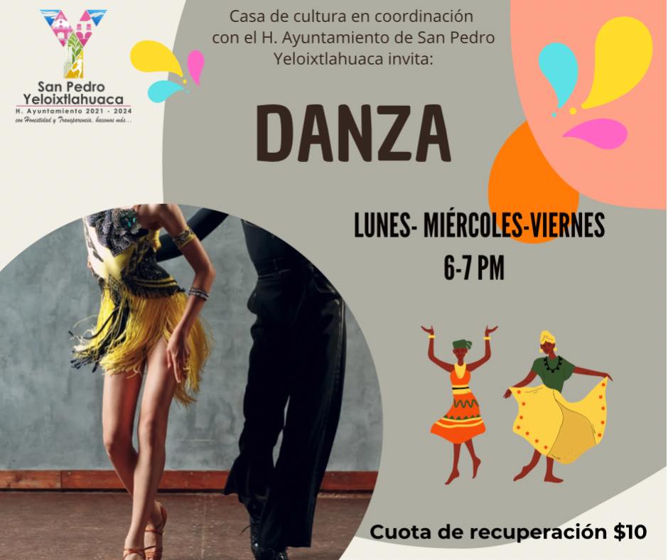 Lunes, zumba de 19:00 a 20:00 horas. Martes, baile urbano, de 16:00 a 17:00 horas, para mayores de 13 años.Martes, canto, de 16:00 a 17:00 horas, para menores de entre 4 y 10 años; miércoles, de 17:00 a 18:00 horas, para menores de entre 11 y 16 años; jueves, de 17:00 a 18:00 horas, para menores de 17 años en adelante.Jueves, cumbia y bachata, de 19:00 a 20 horas, para menores de 15 años en adelante.Lunes, miércoles y viernes, danza, de 16:00 a 17:00 horas.Lunes, miércoles y viernes, flauta, de 10 años en adelante.