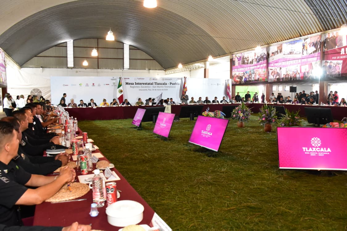 IXTLACUIXTLA, Tlax.- En una unión de esfuerzos y acciones para reforzar la seguridad autoridades de los tres órdenes de gobierno, encabezaron la mesa interestatal Tlaxcala-Puebla, en la que participaron autoridades del gabinete de seguridad y alcaldes de 16 municipios de ambos estados.