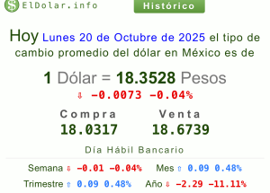 A continuación te brindamos el tipo de cambio dólar a peso hoy en México (USD-MXN), el precio compra y venta en los bancos mexicanos e instituciones de gobierno.