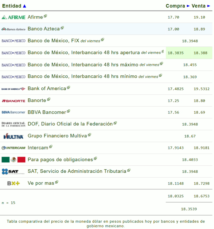 A continuación te brindamos el tipo de cambio dólar a peso hoy en México (USD-MXN), el precio compra y venta en los bancos mexicanos e instituciones de gobierno.