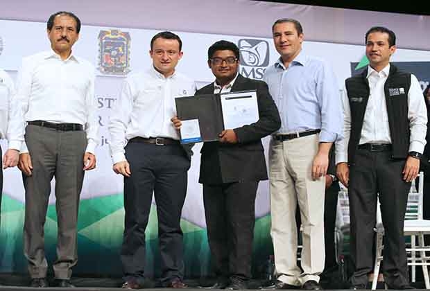 "Puebla es una de las matriculas más grandes de educación superior, y media superior de nuestro país, hoy, le entregamos al gobernador además de los números personales de cada uno de los alumnos que están con nosotros, 420 mil números de afiliación al IMSS, esos 420 mil números de afiliación al IMSS son por primera vez números personales que no tiene que ver nada con una afiliación formal en relación laboral, de las personas con el IMSS, es la primera vez en la historia gracias al licenciado Enrique Peña Nieto; Presidente de México que los estudiantes tienen una primera relación formal con el IMSS" aseguró el Arriola Peñalosa.