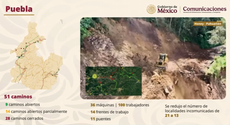 Avance tras afectaciones en Puebla solo 13 permanecen aisladas