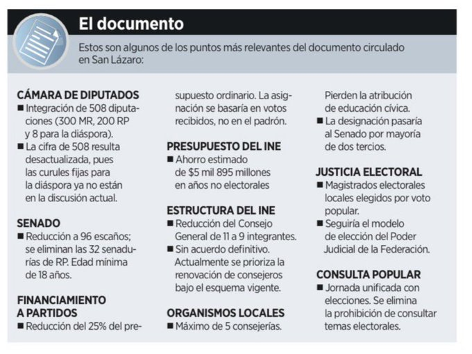 Por ahora, los puntos han trascendido como parte del diseño preliminar que se elabora en Palacio Nacional. La discusión formal marcará el siguiente paso.