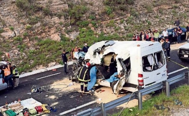 Los hechos ocurrieron en el kilómetro 14+200 de la peligrosa autopista en donde una camioneta tipo Voyager con placas de circulación TXT 6248 del estado de Hidalgo, al intentar rebasar se impacto de frente contra una pick up que venía circulando sobre el carril contrario, en el impacto la minivan golpeo a otro auto particular, el cual fue a dar contra el muro de contención de la carretera.