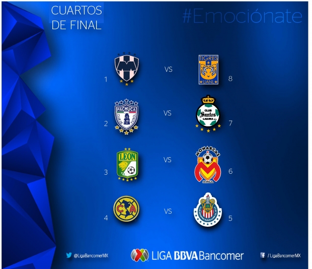 Finalmente, habrá clásico nacional en cuartos de final, América terminó como cuarto en la tabla general y las Chivas como cinco, el partido de ida se jugará en el Estadio de Guadalajara.
