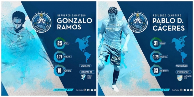Este miércoles la directiva del Puebla anunció dos refuerzos extranjeros más para el Clausura 2017, el mediocampista uruguayo, Gonzalo Ramos, del Club Cerro y Pablo Cáceres de Tucumán de la Liga Argentina.