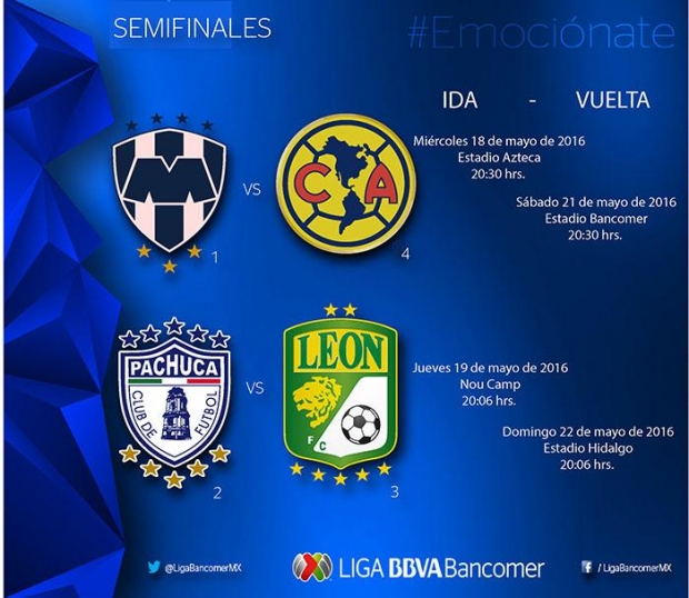 Luego de los cuartos de final se dieron a conocer los días y horarios para las semifinales del torneo Clausura 2016 del futbol mexicano