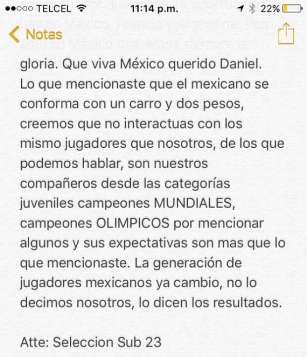 Luego de las declaraciones de Daniel 'Hachita' Ludueña en las que señalaba que "el jugador mexicano es conformista", los futbolistas nacionales Sub-23 contestaron al jugador naturlizado mexicano.