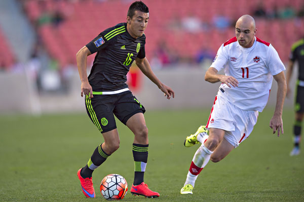 El conjunto azteca era cada vez más superior dentro del rectángulo verde y un minuto después, el volante de los Tuzos del Pachuca, Hirving Lozano entró por la banda izquierda, sacando el disparo que rechazo la defensa de Canadá, quedándole el rechace a Víctor Guzmán, quien prendió un fogonazo de fuera del área, el balón se fue a un costado de la portería contraria.