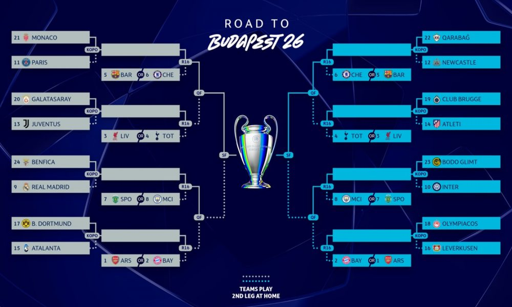Por Play-Offs: Real Madrid, PSG, Atlético de Madrid, Bodø/Glimt, Newcastle, Bayer Leverkusen, Atalanta y Galatasaray.