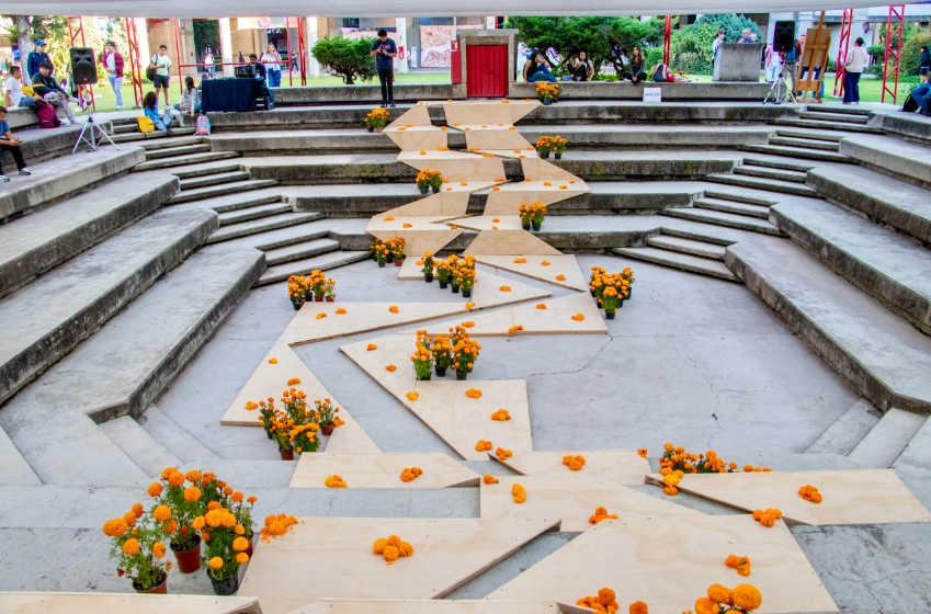 El proyecto fue liderado por el Departamento de Arte, Diseño y Arquitectura (DADA) y se presentó bajo el tema “Actuar y resistir”, concepto que materializa las grietas y heridas causadas por la desigualdad y las ausencias históricas en México. La instalación sorprende al visitante con una grieta que divide un espacio cotidiano, del cual emergen las tradicionales flores de cempasúchil, símbolos del Día de Muertos.