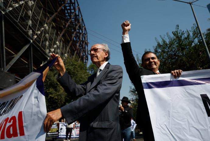 Los exmagistrados y exjueces se congregaron frente al edificio del Órgano de Administración Judicial (OAJ)