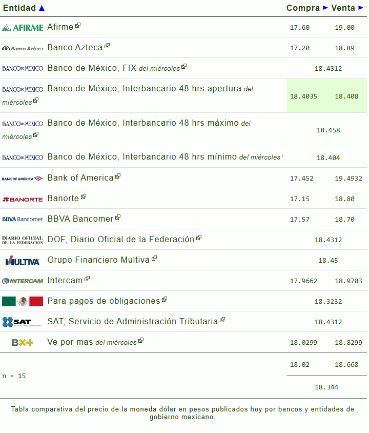 A continuación te brindamos el tipo de cambio dólar a peso hoy en México (USD-MXN), el precio compra y venta en los bancos mexicanos e instituciones de gobierno.