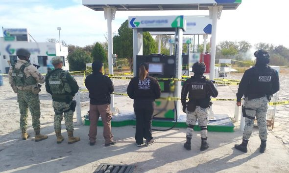 En Jiménez, Coahuila, elementos de FGR, GN y Ejército Mexicano catearon una gasolinera, aseguraron 39,783 litros de gasolina, dos bombas despachadoras de combustible y dinero en efectivo.