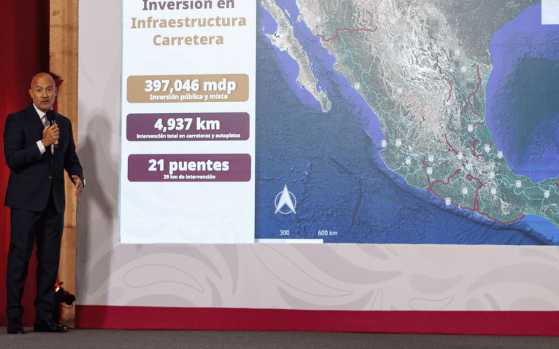En materia de infraestructura vial, la dependencia informó que ya concluyeron el Puente de los Muros en Morelos y el puente Pérez Escobosa en Mazatlán, mientras continúan trabajos en proyectos estratégicos como el puente Nichupté, Rizo de Oro y el paso a desnivel de Los Cabos.