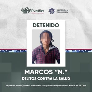 En la segunda acción, uniformados municipales realizaron el aseguramiento de Ricardo “N”, de 35 años de edad, señalado por delitos contra la salud, quien además cuenta con registros por robo a transeúnte y de vehículo.