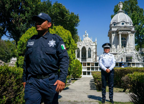 CIUDAD DE PUEBLA, Pue.- En cumplimiento al compromiso del Gobierno del Estado de Puebla, encabezado por el gobernador Alejandro Armenta, de garantizar el bienestar y generar entornos seguros para las familias poblanas, la Policía Auxiliar mantiene un despliegue operativo en distintos panteones de la capital poblana con motivo de las festividades del Día de Muertos, a fin de brindar seguridad y mantener el orden en las visitas de familiares y asistentes.