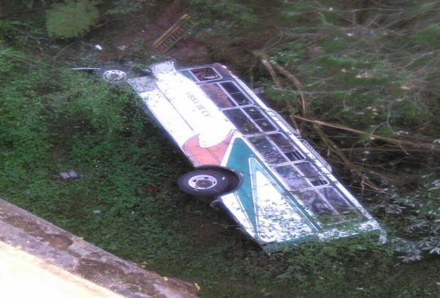 Los hechos ocurrieron la tarde del pasado miércoles cuando el chofer del camión de pasajeros perdió el control de la unidad al ser alcanzado por otro vehículo, por lo que fue a dar al fondo de un barranco.