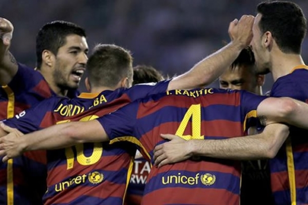 El Barcelona ganó 0-2 al Real Betis con un discreto partido para así retener el liderato en su lucha por la Liga con el Atlético y el Real Madrid.