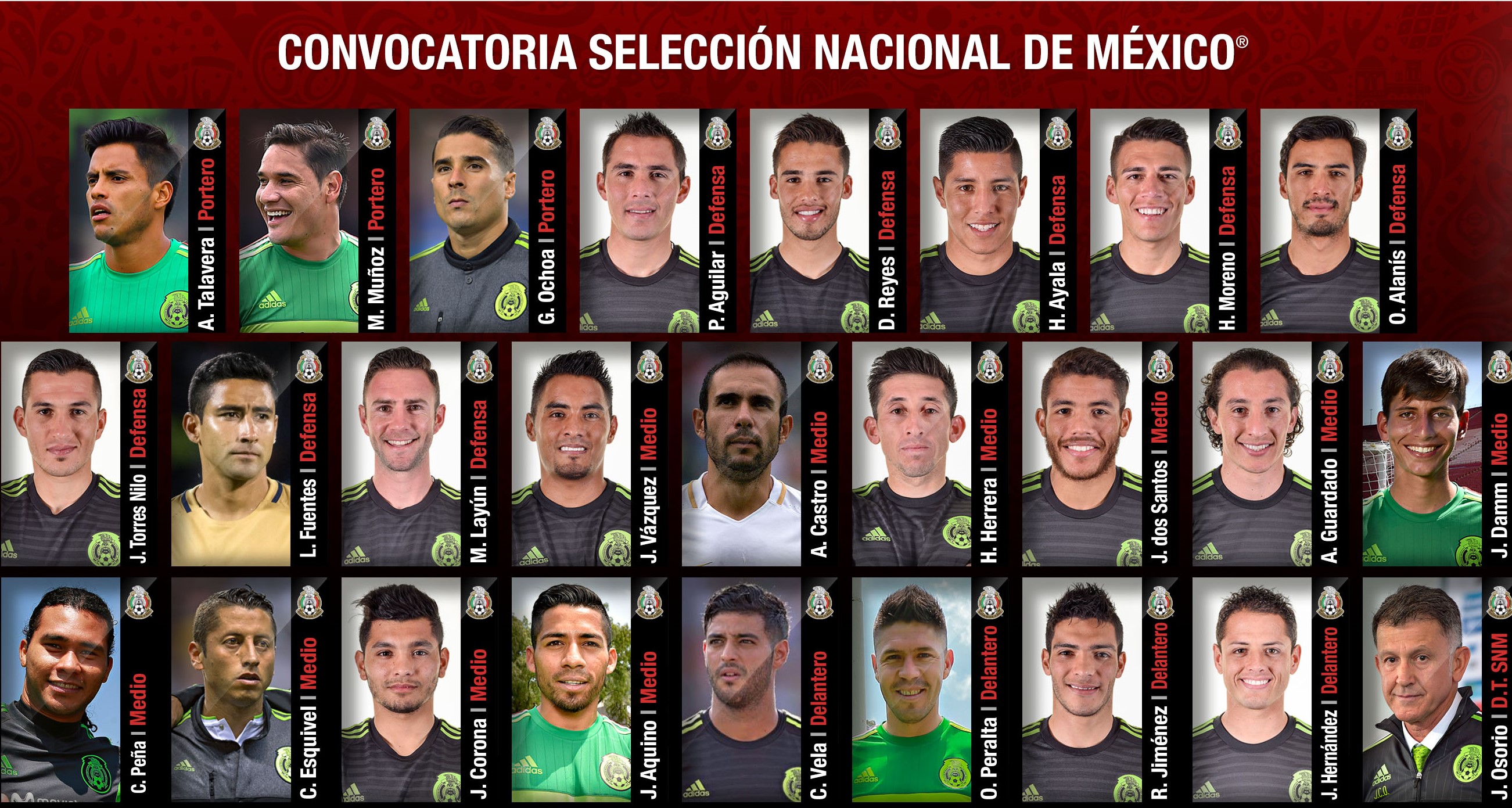 En total son 11 jugadores que militan en las ligas europeas y el resto en la liga casera. Las sorpresas son, Luis Fuentes y Alejandro Castro de la UNAM. Además se da el regreso de Carlos Peña y Guillermo Ochoa.